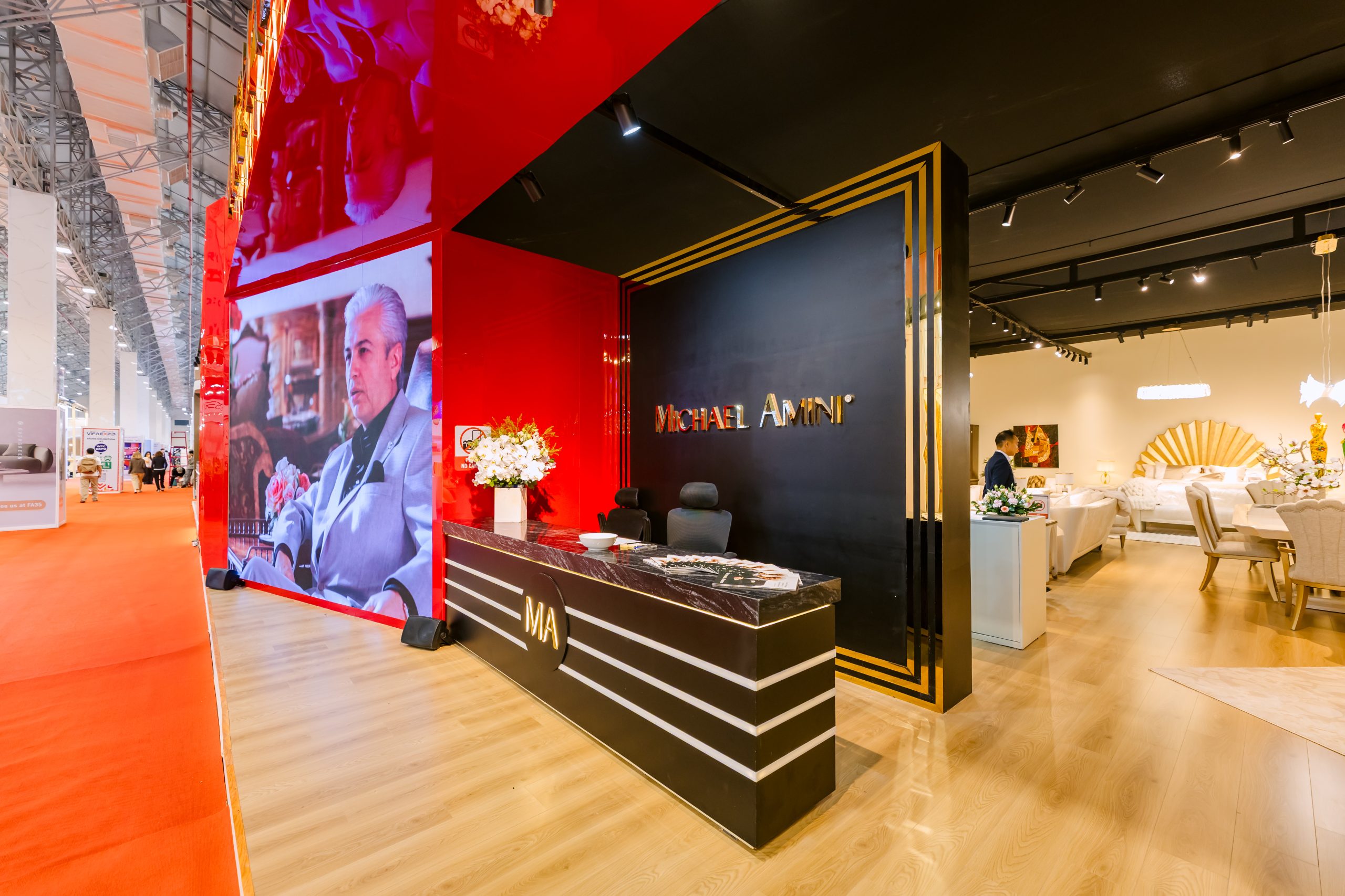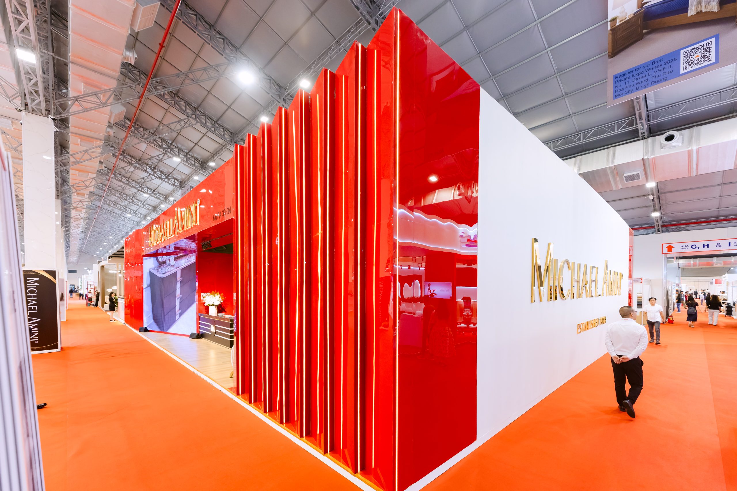 Gian hàng triển lãm, Triển lãm Anh Retouch Thiết kế thi công gian hàng cho MICHAEL AMINI Posted on 16/03/202616/03/2026 by Admin Triển lãm được tổ chức tại Show vifa expo 2026 Hình ảnh thi công Công trình hoàn thiện Xem thêm các video dự án đã thực hiện của AMS tại đây!
